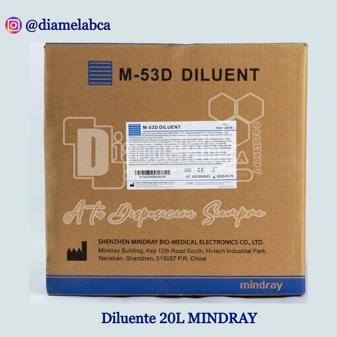 DILUENTE HEMATOLOGICO x20L MINDRAY. El Diluente Hematologico se utiliza para análisis de células sanguíneas en equipos Hematologicos automatizados