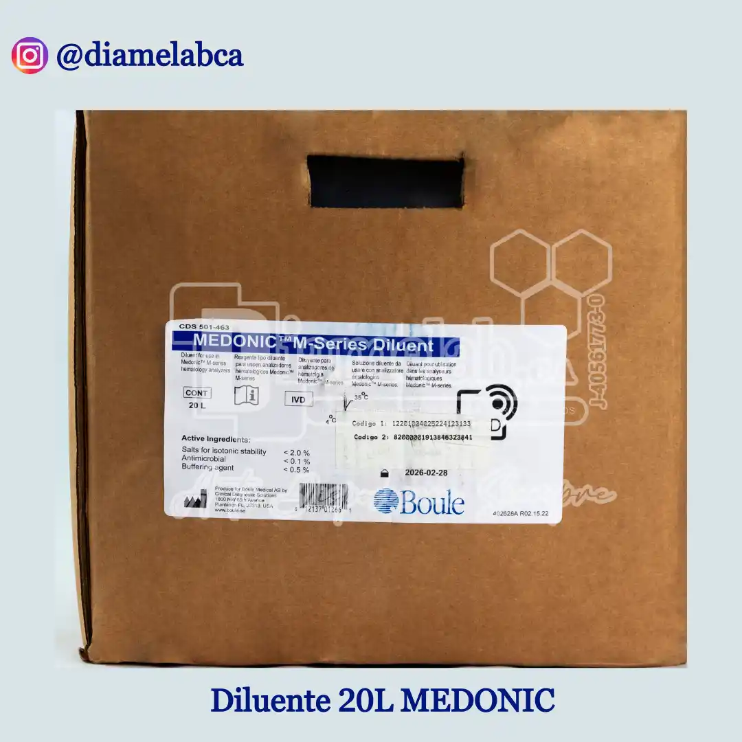 DILUENTE x20L SWELAB/ MEDONICEl. Diluente Hematologico se utiliza para análisis de células sanguíneas en equipos Hematologicos automatizados